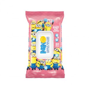 دستمال مرطوب کودک حاوی کالاندولا 50 برگي صورتی مینیون درب دار نینو